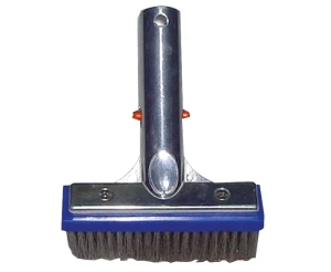 Swimming pool walls should be regularly brushed to prevent the build up of algae. For stubborn algae growth on the walls of concrete pools, use an algae brush with stainless steel bristles to make cleaning easier.